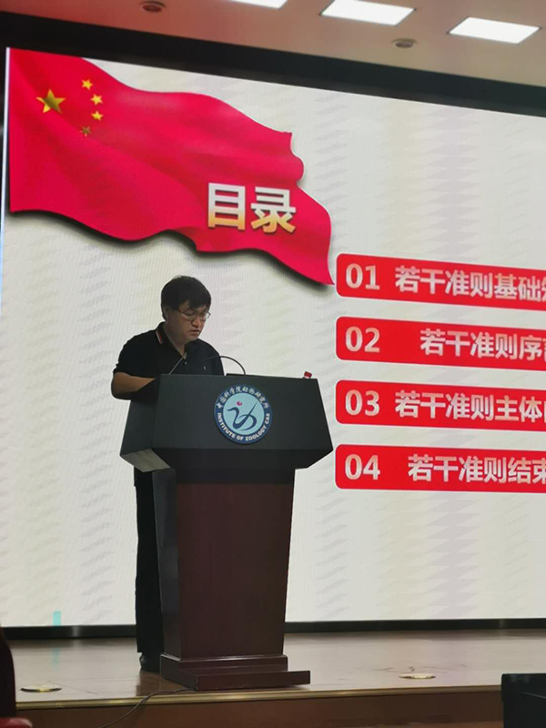 支部委员张潇冉首先传达了动物研究所党委关于进一步做好“基层组织建设年”活动的通知精神,号召党员同志们全面落实从严治党要求,坚持问题导向,补短板、强弱项,力争把管理党支部建设成政治功能强、支部班子强、党员队伍强、作用发挥强的“四强”党支部。
