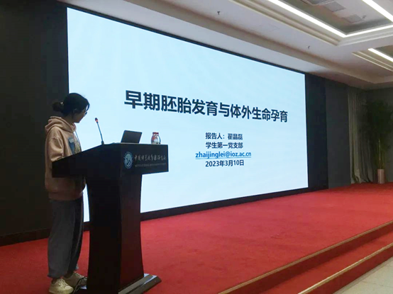 翟晶磊同志做“早期胚胎发育与体外生命孕育”为题的报告