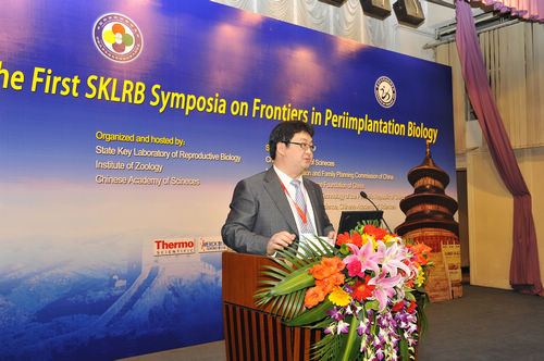| 国家人口与计划生育委员会科技司副司长张黎明致辞 | 中国科学院国际合作局曹京华局长致辞 | 中科院动物所SKLRB孙青原主任介绍SKLRB | 中科院动物所段恩奎书记介绍Janet Rossant教授 |