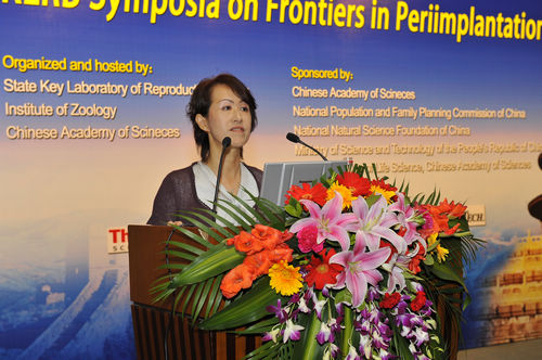 | Janet Rossant 教授做大会发言 | 中科院动物所所长孟安明致欢迎词 | Yomiko Saga博士作报告 | Andras Naga 博士作报告 |