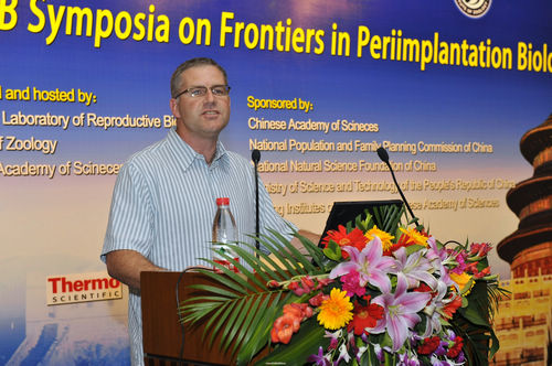 | David R Armant 博士作报告 | 王红梅博士作报告 | Stephen Lye 博士作报告 | 会议志愿者合影 |