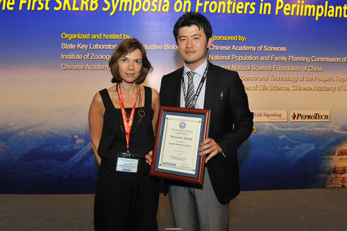 | “优秀墙报奖“获得者陈琦 | “优秀墙报奖“获得者周智 | “优秀墙报奖“获得者高文龙 | Satoshi Tanaka 博士作报告 |